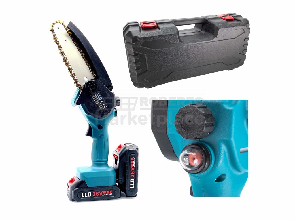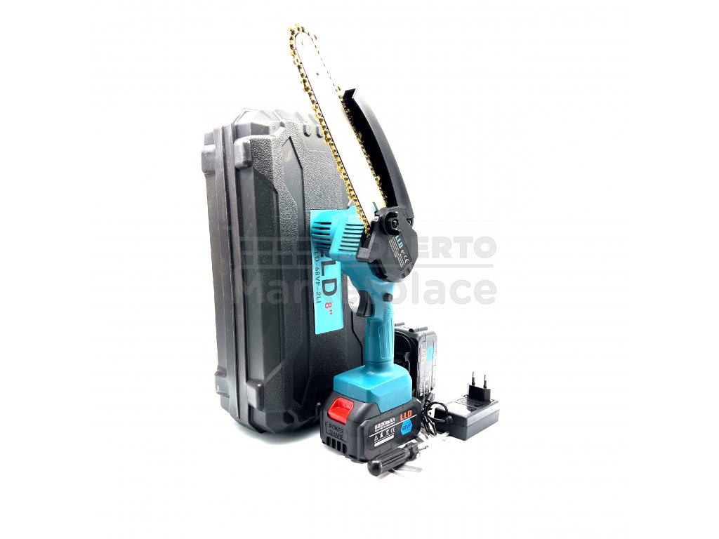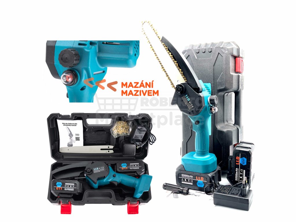 Balení: Zasíláme kompletní zařízení s lištou 240 mm a řetězem8", nabíječkou, 2 bateriemi 6000 mAh 68vf , křížovým šroubovákem pro nastavení a instalace řetězu, vše v praktickém kompaktním kufříku.