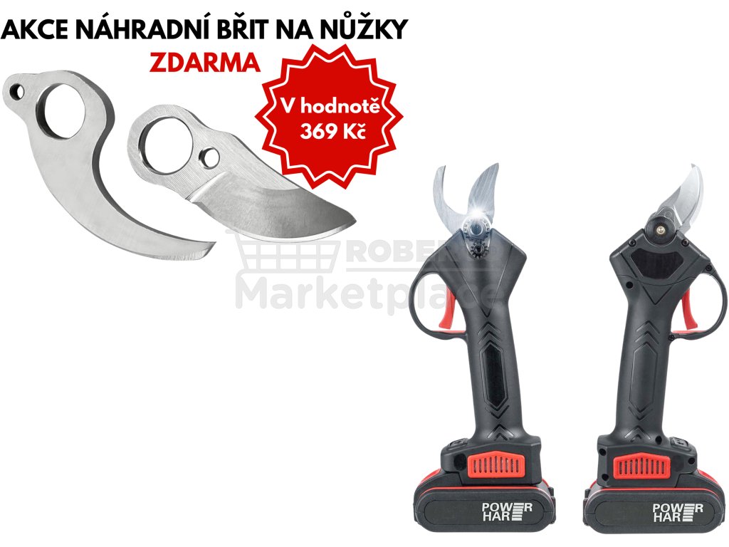 Výkonné aku zahradnické nůžky 32 mm. Počet aku 2 ks 2000 mAh + ZDARMA NÁHRADNÍ BŘIT