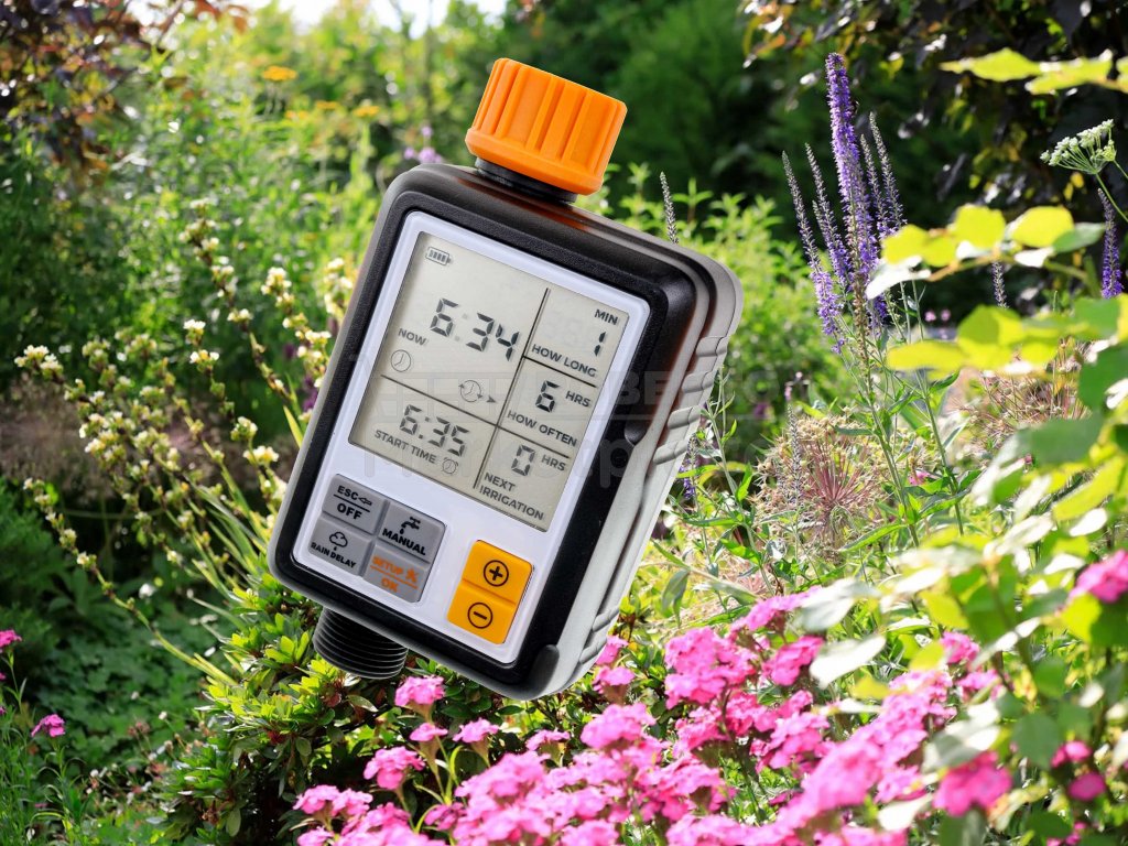 Závlahový digitální počítač na dávkování průtoku vody na zahradu.